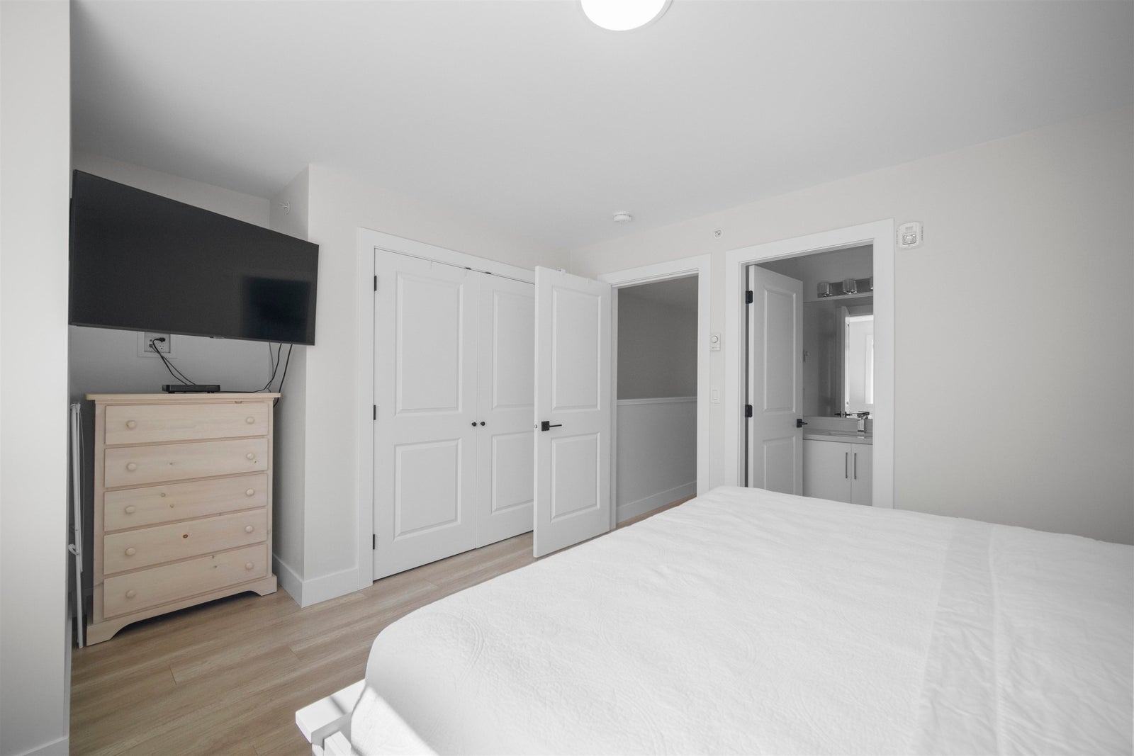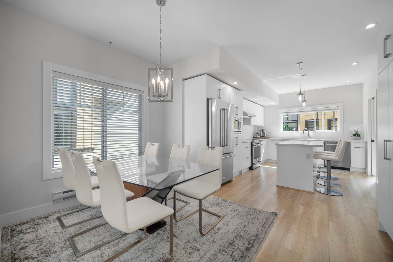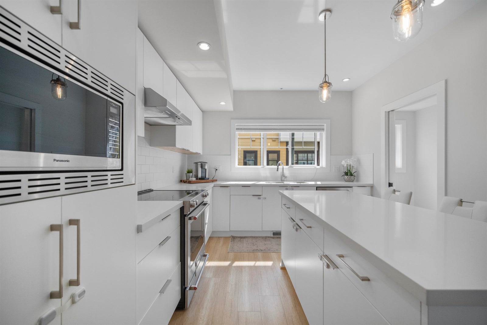 Experience the pinnacle of urban living in the largest home at Sophia Living-1,430 sq ft of stylish comfort in the heart of Port Moody Centre. This spacious 3 Bed, 3 Bath corner townhome offers soaring 9', and luxury vinyl floors throughout. A chef-inspired kitchen features quartz countertops, a generous island, and extended cabinetry with granite-topped built-ins in the dining and living areas. Cozy up by the custom fireplace wall or step out to a full-width balcony with panoramic mountain and partial inlet views. The upper level hosts three spacious bedrooms, including a serene primary with built-ins and a sleek ensuite. Unbeatable location near Moody Centre SkyTrain, Brewery Row & Rocky Point. TWO side-by-side parking stalls included, a storage locker and 2 allocated bike stalls.