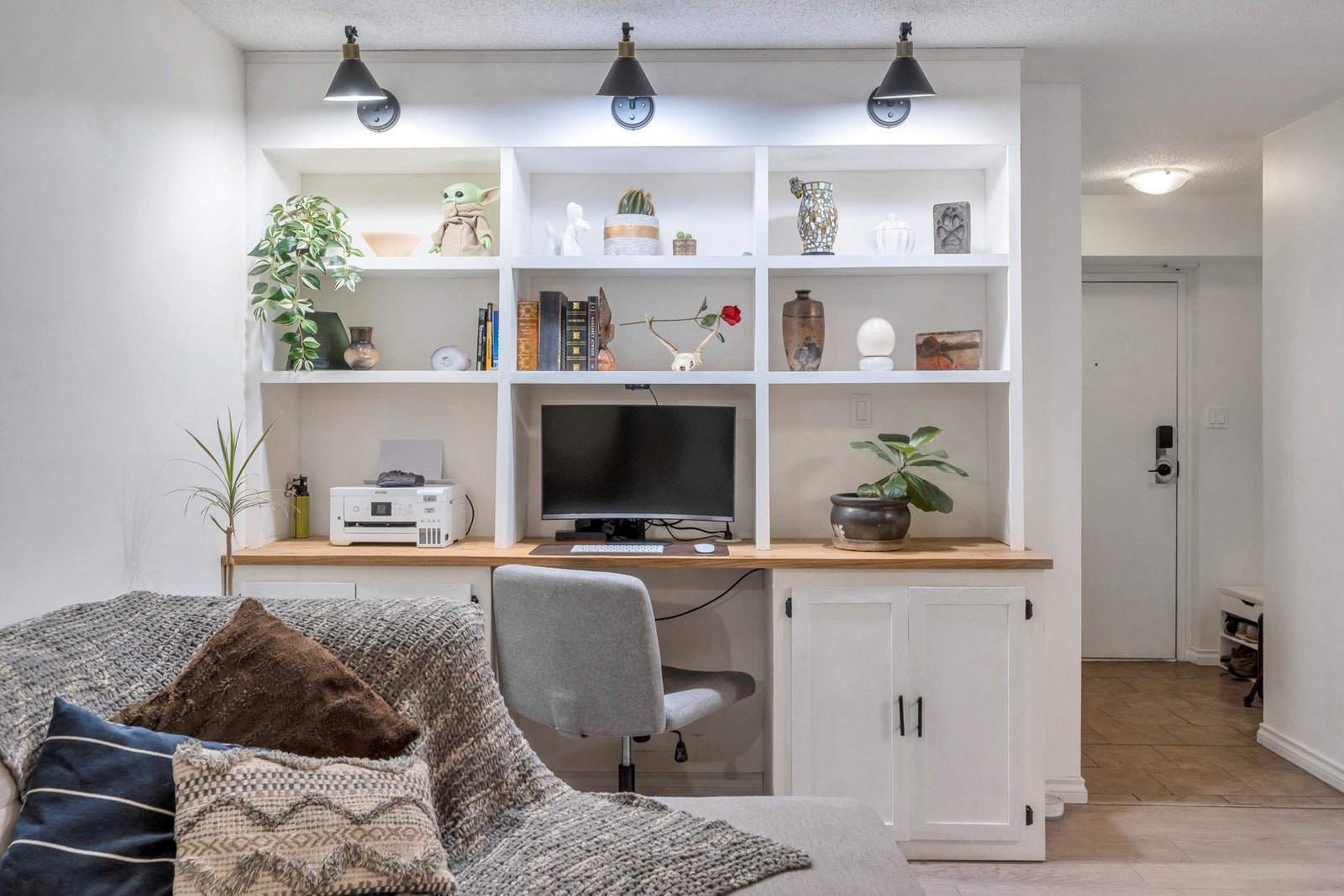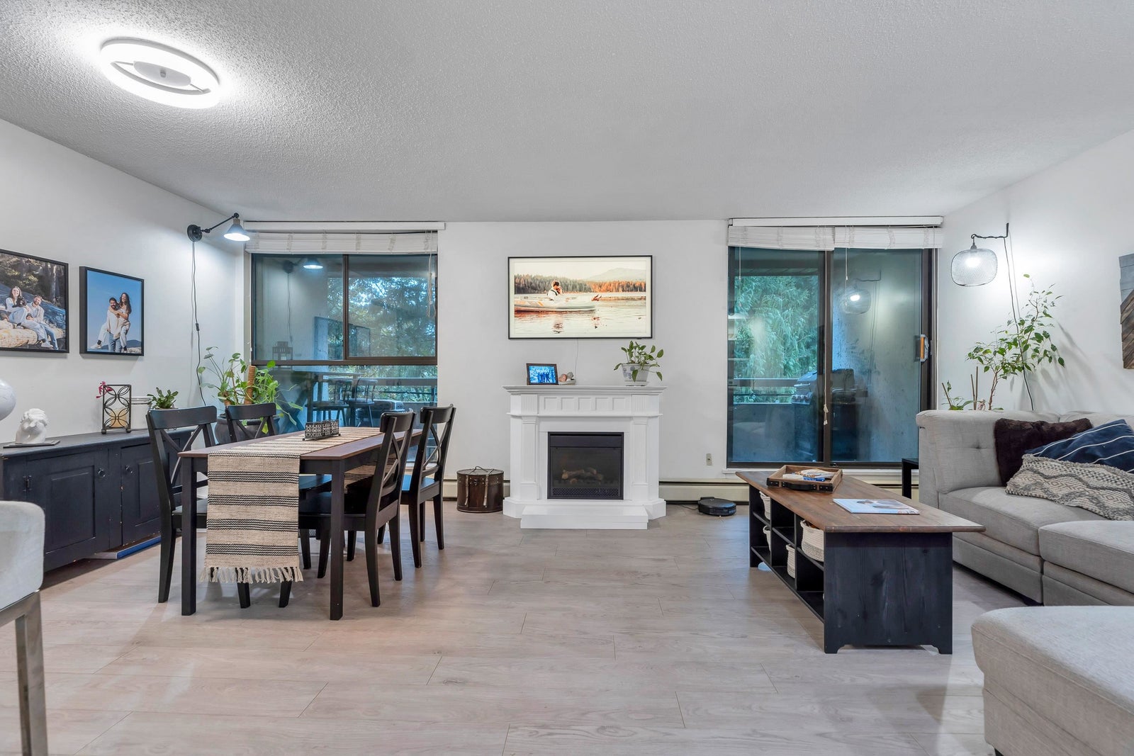 Welcome home to this renovated, bright and meticulously maintained 2 BED, 2 BATH home that features modern flooring and an updated kitchen with stainless steel appliances. Boasting a spacious open-concept dining and living space with a custom-built-in office desk and storage, ideal for working from home. The large primary bedroom includes a private ensuite, and you'll enjoy the peaceful treed outlook from two HUGE balconies totalling 290 sq. ft. Amenities include an indoor pool, hot tub, sauna, gym, billiards room, party room, workshop, and bike room. Strata fees INCLUDE heat (natural gas), hot water, electricity and more! Steps to Lougheed Mall, SkyTrain, and parks. WINDOWS were upgraded to double pane by previous owner! OPEN HOUSE MARCH 14 FROM 1-3 PM!